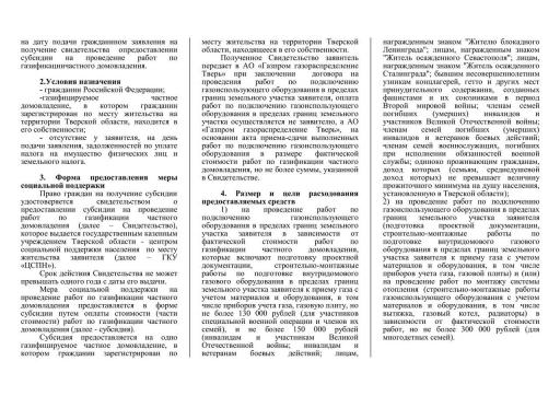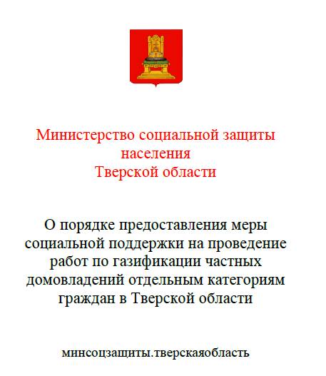 Предоставление меры социальной поддержки на проведение работ по газификации частных домовладений отдельным категориям граждан в Тверской области.