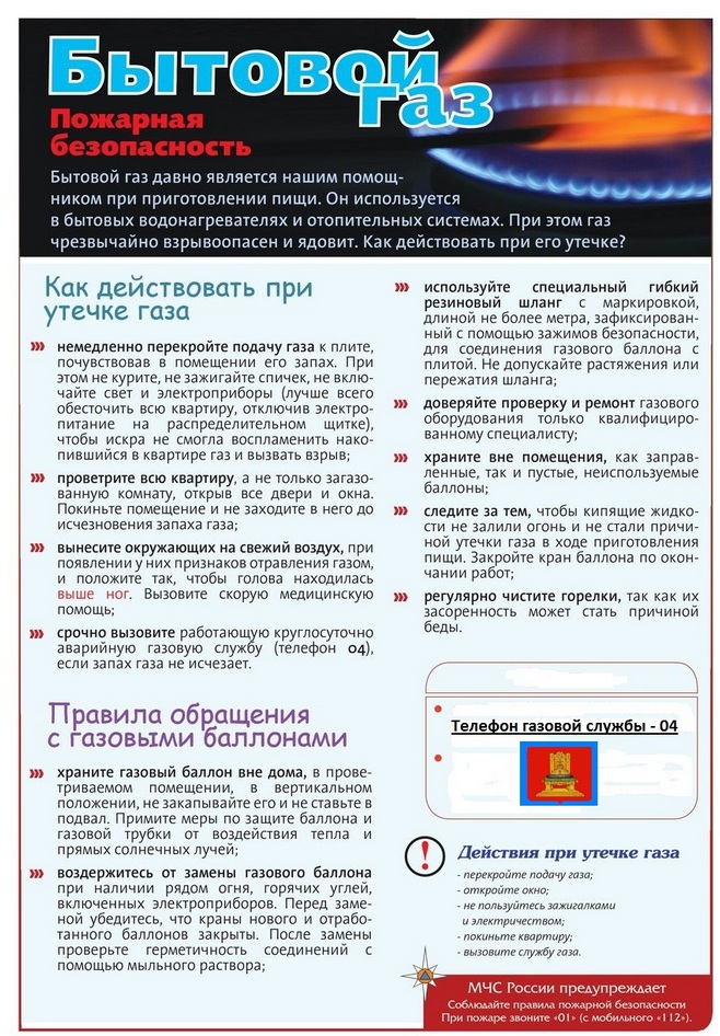 Правила безопасности - бытовой газ