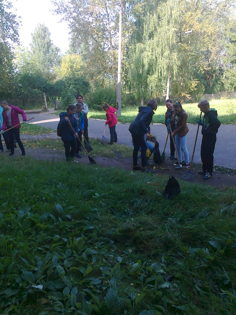 Также ученики и педагоги всех образовательных учреждений района присоединились к массовому субботнику, многие из них очищали от мусора и уже опавших листьев пришкольные территории.